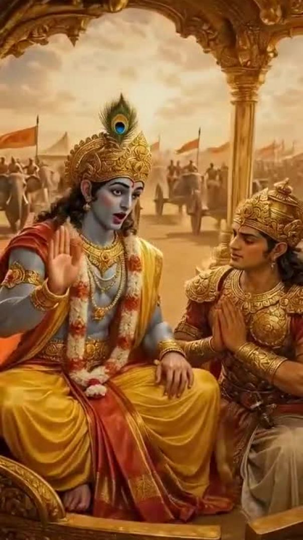 Krishna giving updesh to Arjuna at the kurukshetra Krishna wants that Arjun should fight therefore he is saying you should do the fight with your enemies