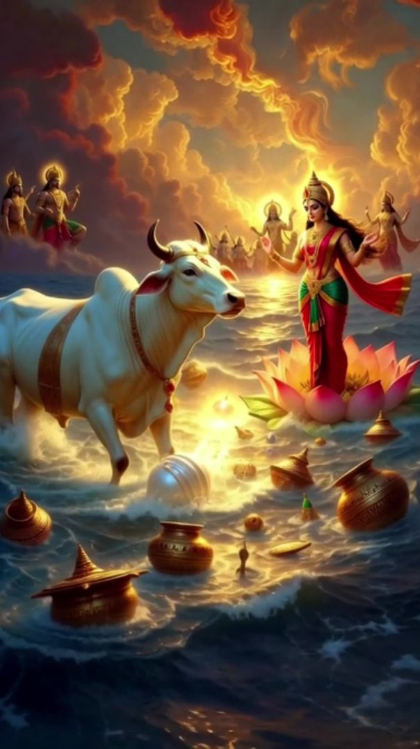 In this powerful Hindu mythology short, discover the divine story of Samudra Manthan, where gods and demons churned the cosmic ocean to obtain Amrit. From the sacred waters emerged Goddess Lakshmi, the goddess of wealth, prosperity, and fortune, who chose Lord Vishnu as her eternal companion.