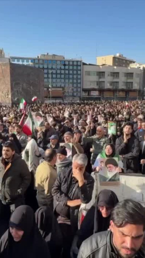 ⁣🚨 Thousands pack Enghelab Square in Tehran to mourn Ayatollah Khamenei