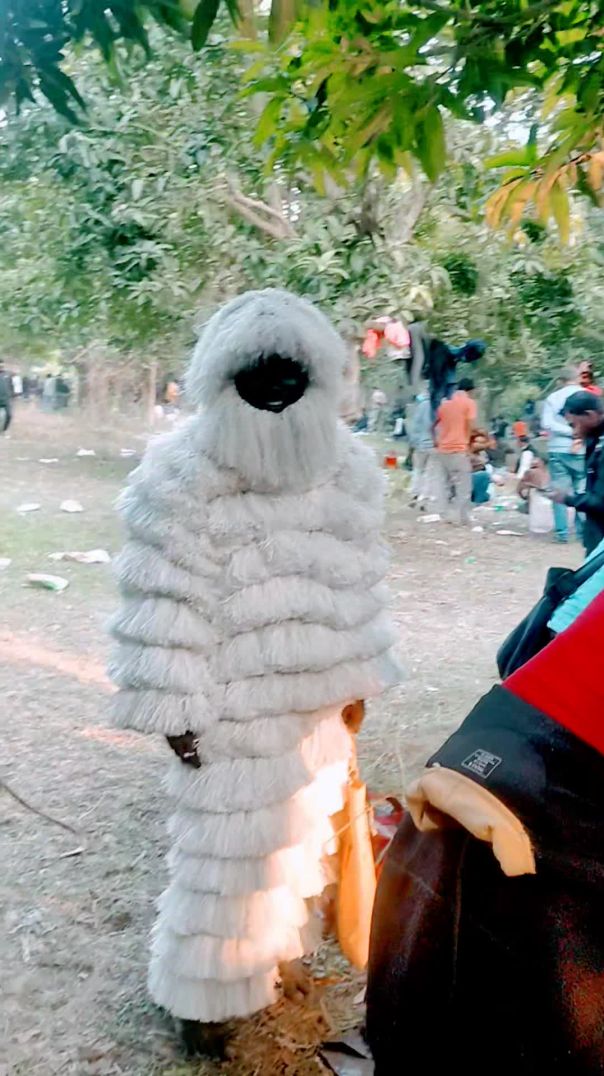 ⁣The man has dressed up as a funny monkey.