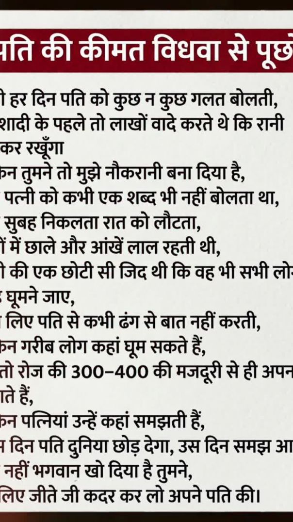 ⁣पति की कीमत विधवा से पूछो