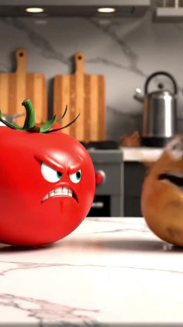 the video shows fight betwwen tomato and potato