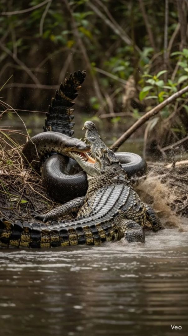 Anaconda with shark and crocodile fight animals fight nature video