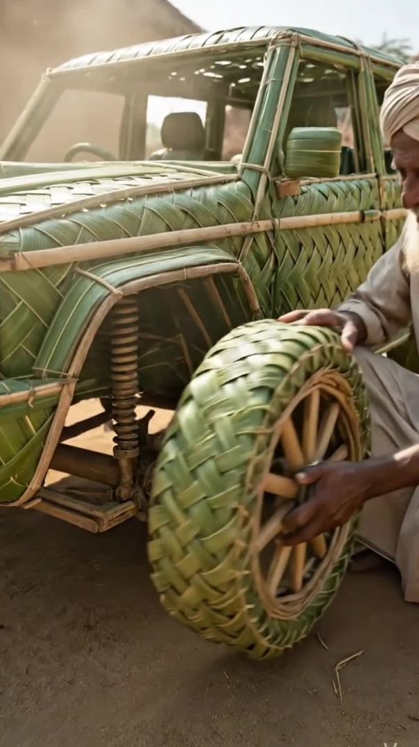 car made from palm leaves #mini wood toys #wooden craft