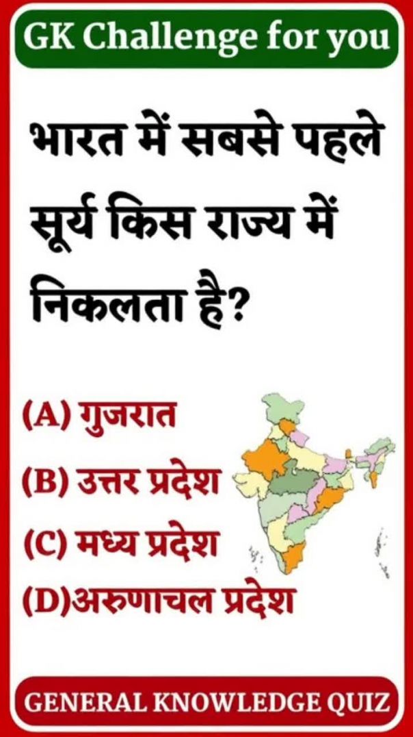 भारत में सूर्य सबसे पहले किस राज्य में निकलता है 😌