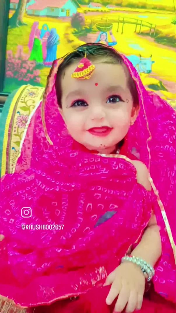 With an innocent smile, beautiful traditional attire, and a devotional Radhe Krishna vibe, this sweet moment spreads love and happiness 😊🌸
