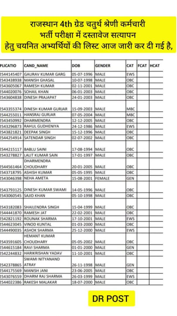#drpost #4thgraderesult #4thclass #4thclassvacancy #rajasthan #rssbexams #rssbexams