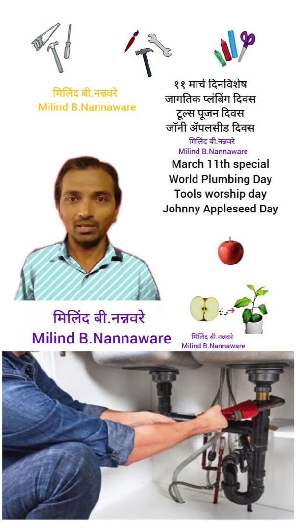 ११ मार्च दिनविशेष / March 11th special / जागतिक प्लंबिंग दिवस / टूल्स पूजन दिवस / आयुधं पूजन दिवस / जाॅनी ॲपलसीड दिवस /जाॅन चॅपमन /