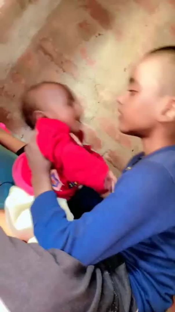 Cute baby copying dad