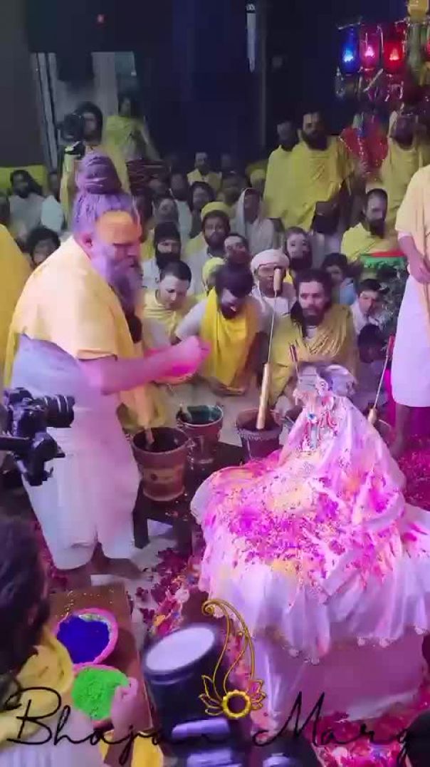 ⁣प्रिया-प्रियतम के चरणों में समर्पित प्रेम के रंग! महाराज जी के सानिध्य में वृंदावन की इस पावन होली के दर्शन करें।