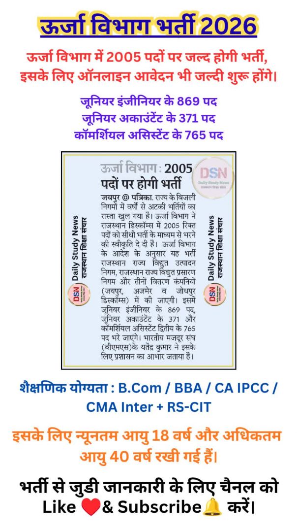âŖā¤Šā¤°āĨā¤œā¤ž ā¤ĩā¤ŋā¤­ā¤žā¤— ⤭⤰āĨā¤¤āĨ€ 2026 || JVVNL New Vacancy Update | Online Application Started Soon | 2005 POST |