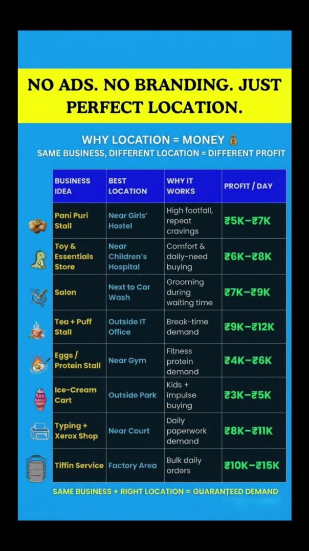 The same stall, shop or service can make ₹3,000/day in one place and ₹15,000/day in another - just because of footfall & demand.
