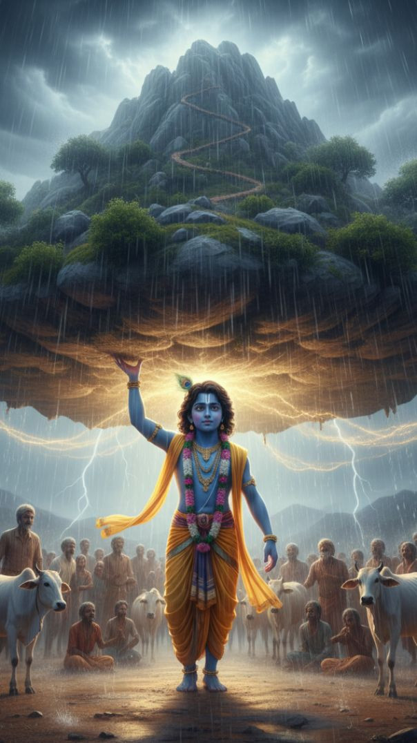 गोवर्धन पर्वत को उठा लिया।