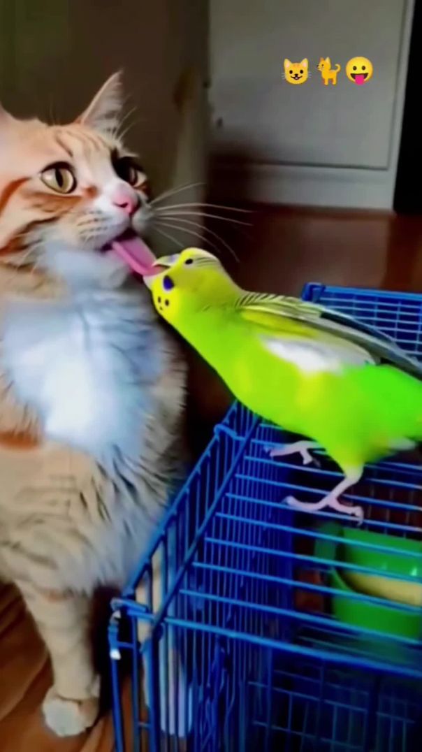 ⁣The parrot bit the cat's tongue
