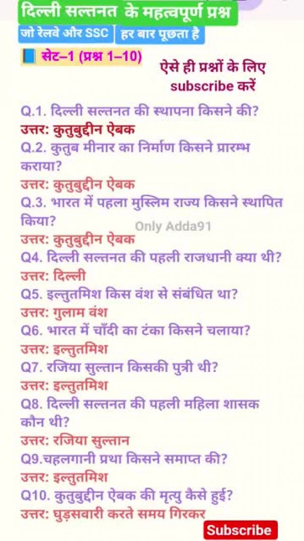 ⁣दिल्ली सल्तनत के महत्वपूर्ण प्रश्न || जो रेलवे और SSC में बार बार पूछे जाते है || Delhi Sultanate MCQ Set-1 | दिल्ली सल्तनत GK प्रश्न उत्तर | History MCQ in Hindi