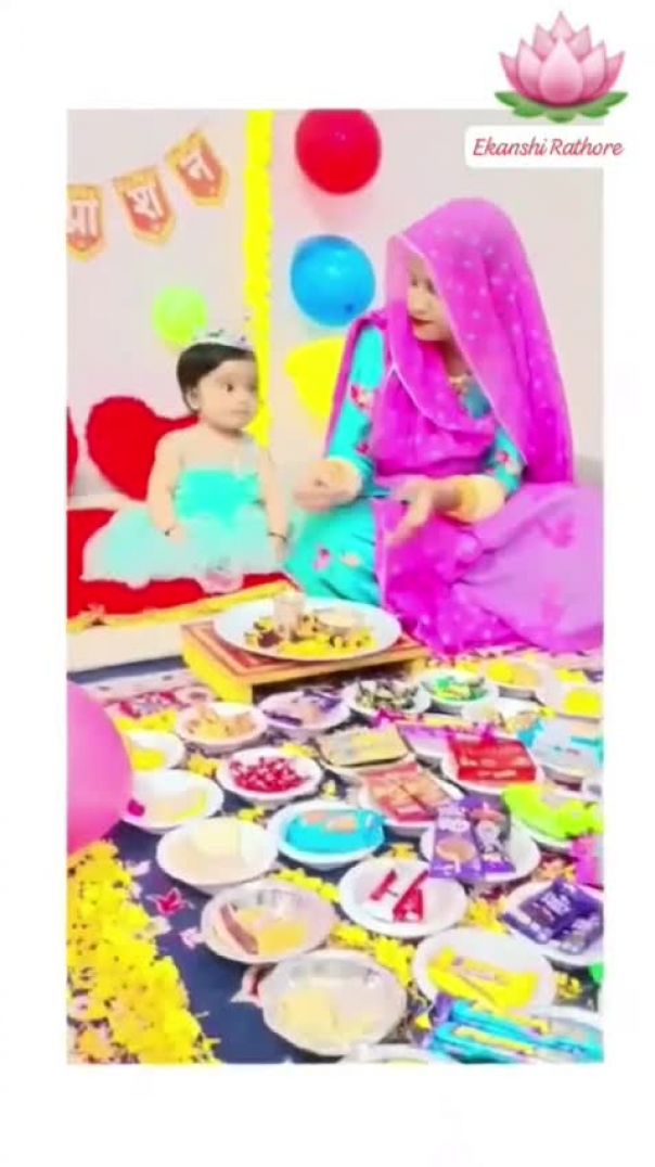 ⁣This photo captures a beautiful Annaprashan ceremony, where a little baby girl is being fed solid food for the very first time. With love and blessings, she is gently fed using a silver spoon, making the moment special and meaningful. The colorful decorations and joyful atmosphere make this memory truly precious.