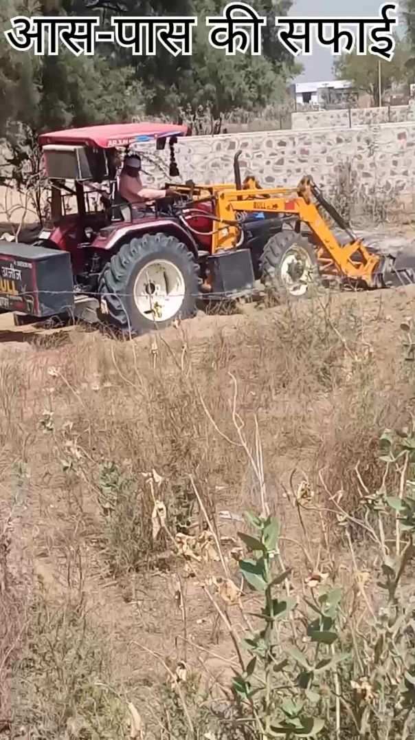 JCB से घर के आस पास की सफाई
