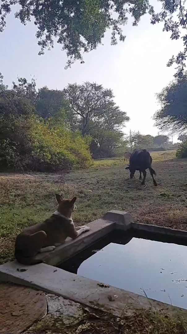 खेत और गाय की रखवाली कर रहीं हैं मीरा (कुतिया) 👍