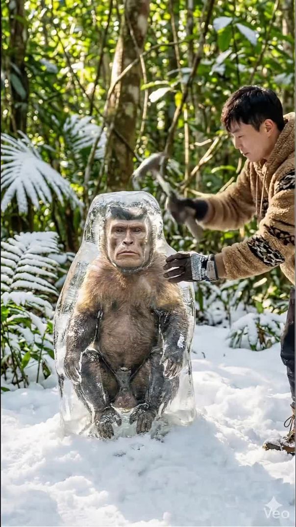 ⁣❄ Ice se phase hue bandar ko ek BTS boy ne apni jaan ki parwah kiye bina himmat aur pyaar se bachaya 🐒💜