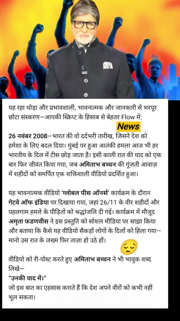 “26/11 की दर्दभरी यादें… अमिताभ बच्चन की आवाज़ ने रुला दिया 🕯💔 KBG News MEDIA