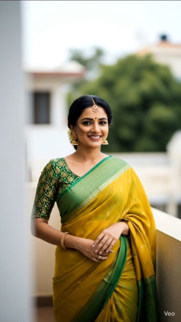 Elegant Indian Woman in Green & Yellow Saree | Traditional South Indian Look ✨