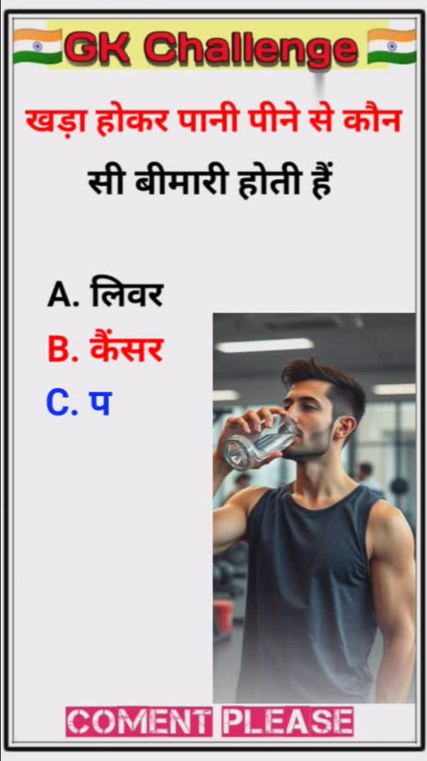 खड़ा होकर पानी पीने से कौन सी बीमारी होती है #gk #gkquestion #gkanswer