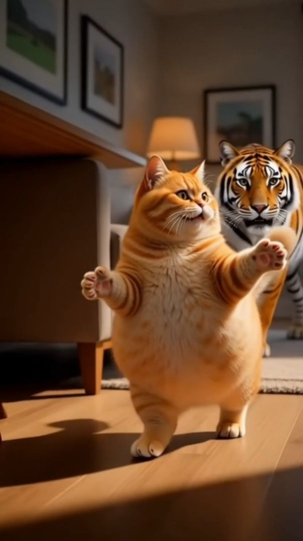 ⁣Cat Trapped Tiger in the cage