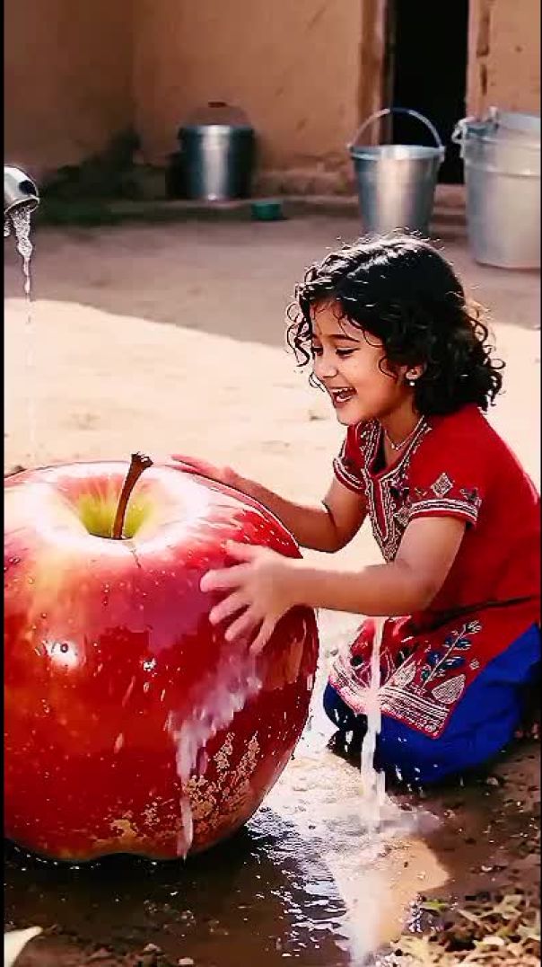 ⁣Cute_baby_brings_big_apple_home_and_feeds_it_to_all_the_village_children_and_birds_😭_#ai_#tree