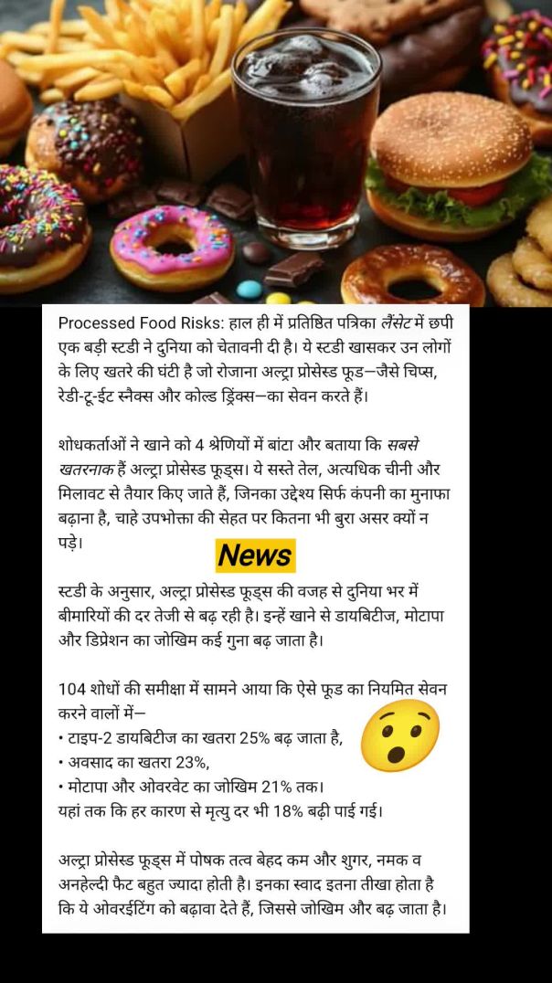 लैंसेट स्टडी का बड़ा खुलासा: रोज़मर्रा का प्रोसेस्ड फूड आपकी सेहत बर्बाद कर रहा है!” KBG NEWS MEDIA
