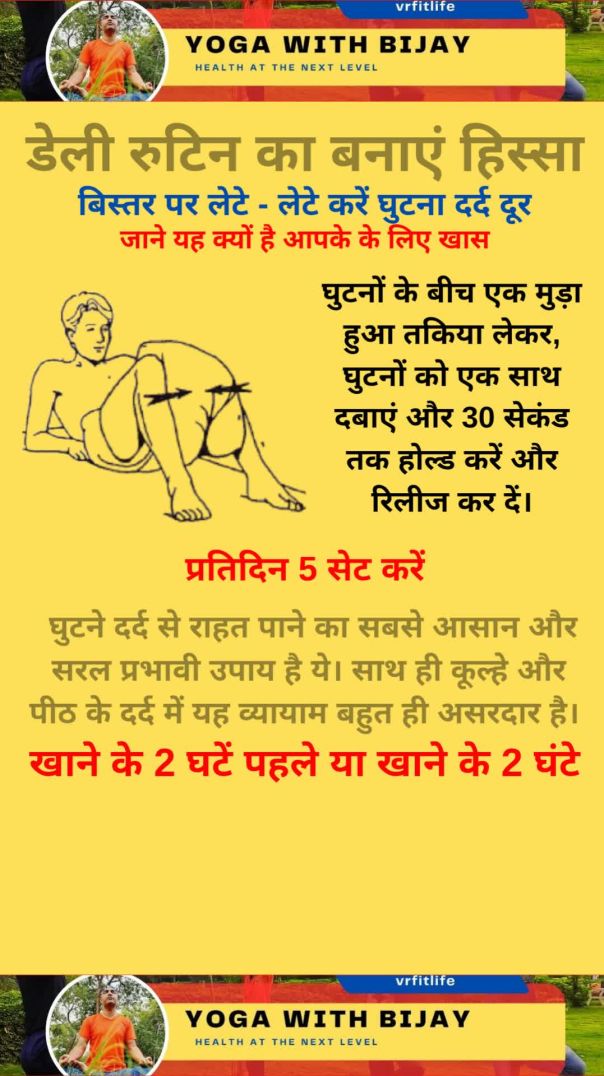 ye exercise knee pain ke liye bahut hi effective hai aur karne mein bhi easy hai । aap practice bed par bhi ek pillow ki help se kar sakte hai