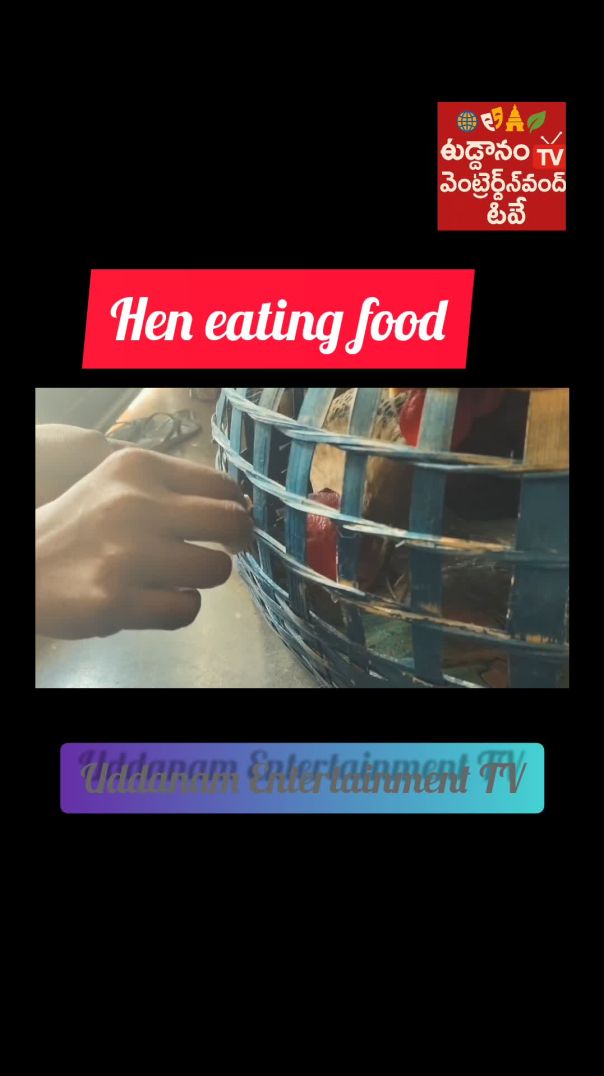 Hen eating food in