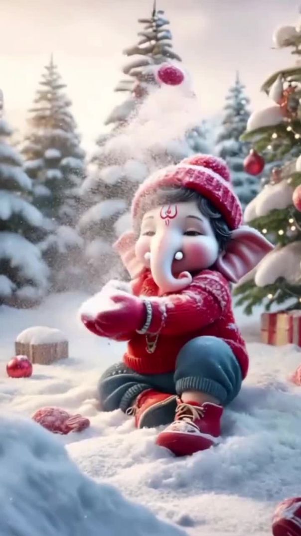 Happy Ganesha Little Ganesha playing with snow #snow #ganesha #aigenerated #viralpost #god #ganeshapainting #aiartcommunity #ganeshaart