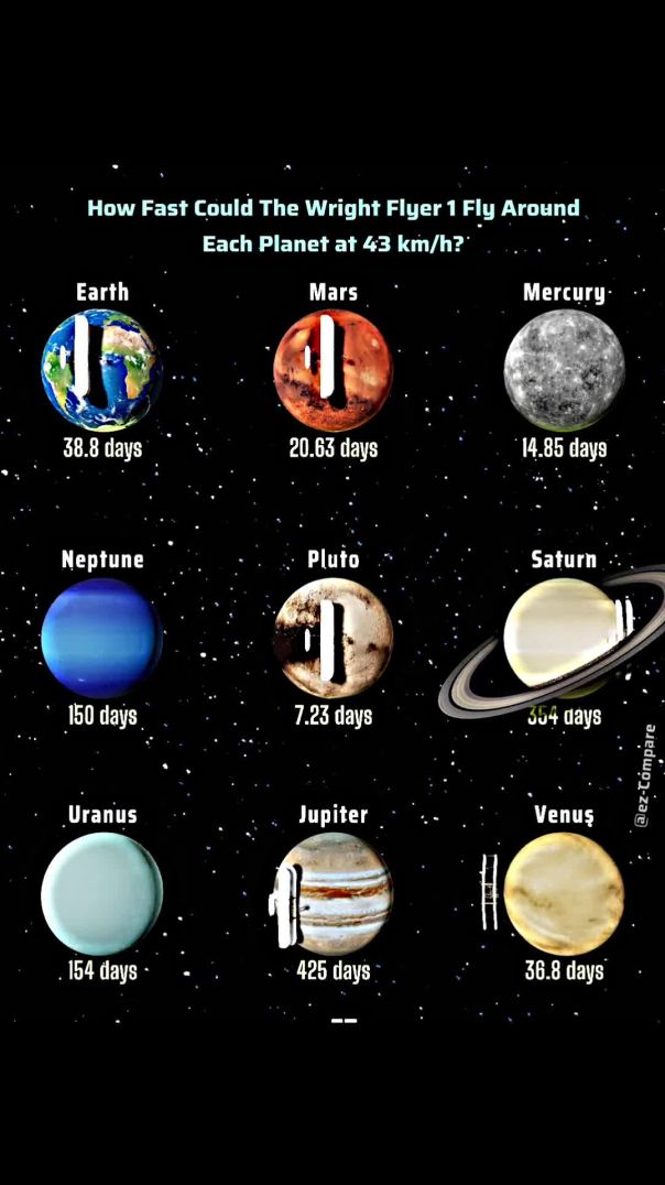 ⁣Ever wondered how fast the Wright Flyer could fly around different planets?
